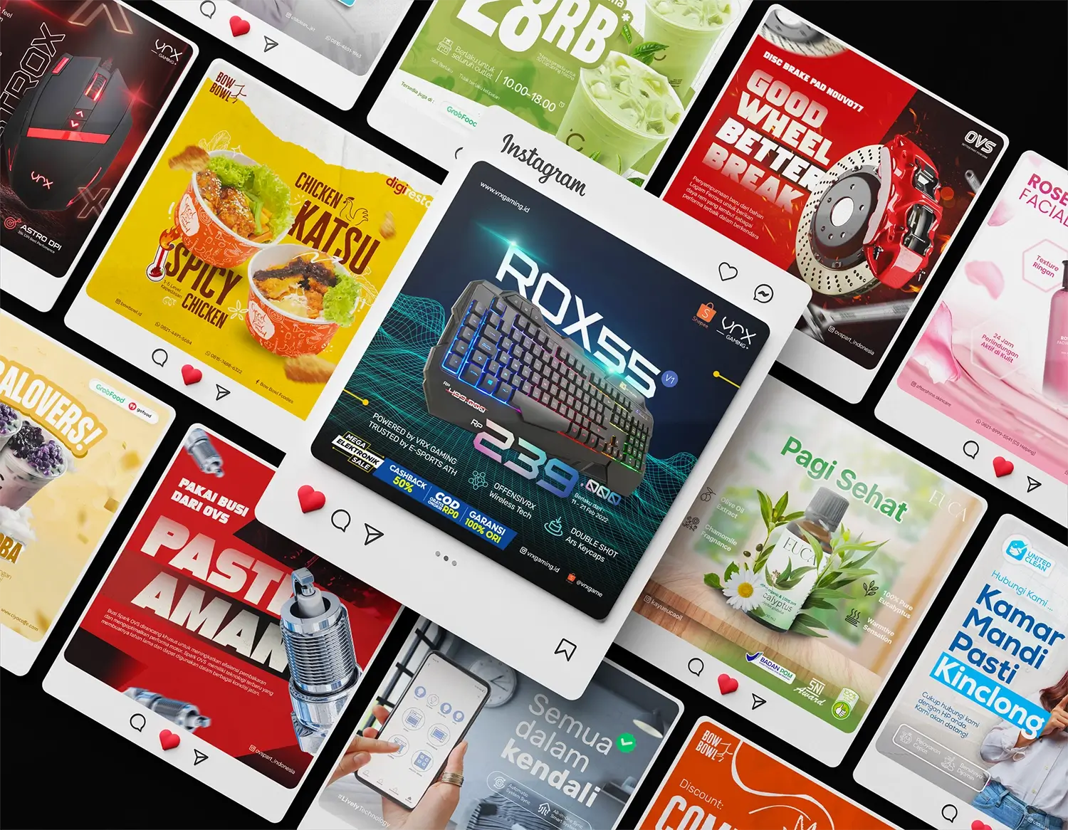 Mendesain konten media sosial untuk berbagai brand klien di Instagram, Facebook, dan platform digital lainnya, serta mulai membuat website menggunakan Elementor. Semua desain disesuaikan dengan identitas visual masing-masing brand dan siap digunakan secara digital.