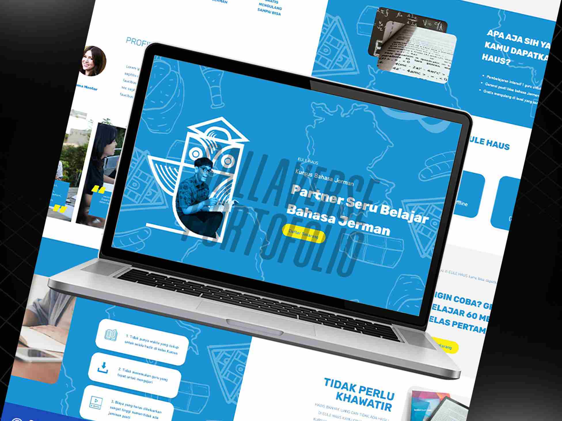 Mendesain konten media sosial dan materi branding untuk tiga brand perusahaan, termasuk pengembangan satu brand baru. Membuat berbagai desain seperti materi promosi, aset website, poster, brosur, dan konten edukasi digital. Semua desain disesuaikan dengan identitas visual masing-masing brand dan kebutuhan program belajar siswa untuk PTN, Sekolah Kedinasan, Polri, dan CPNS.
