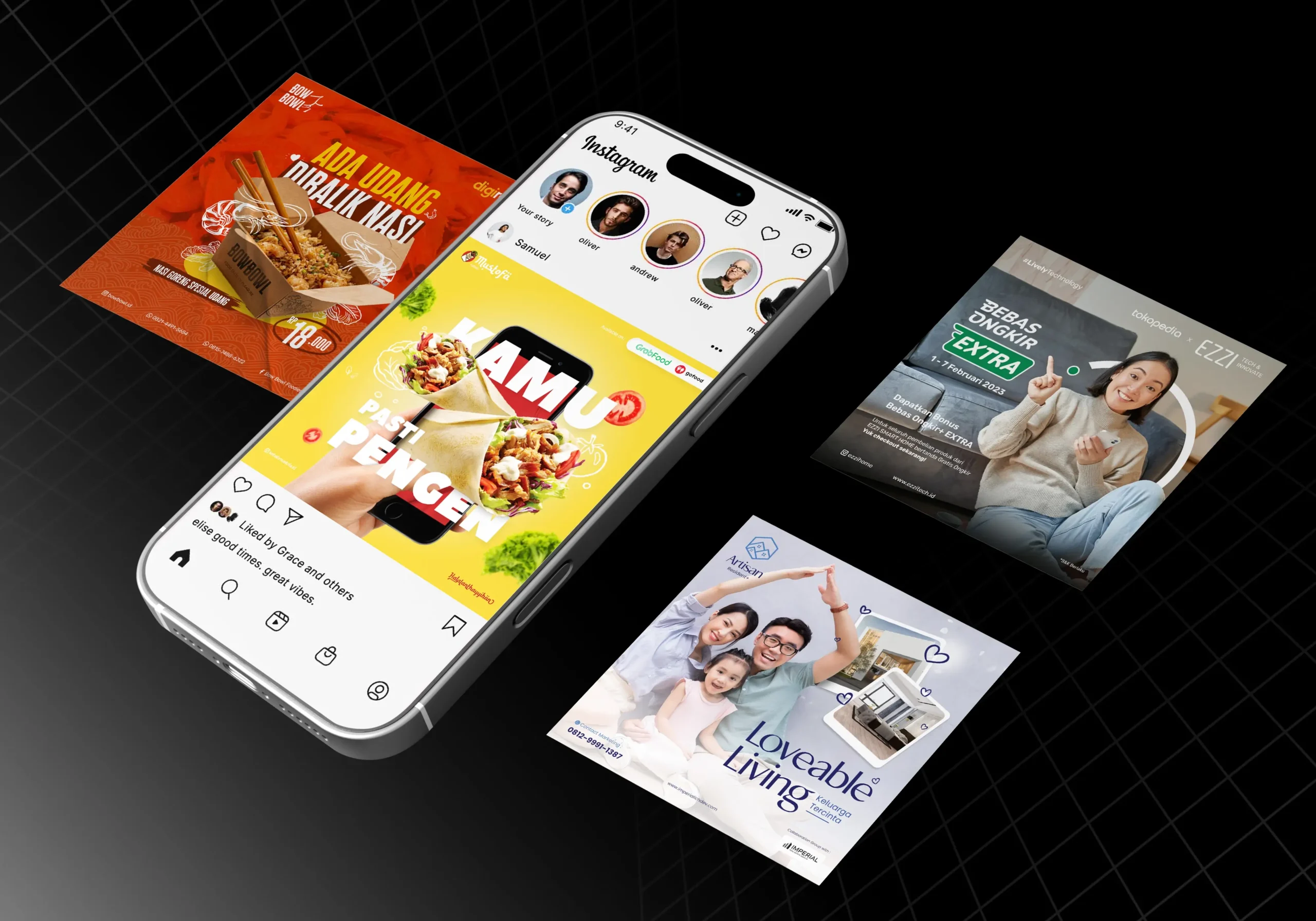 Berikut adalah beberapa proyek yang pernah saya kerjakan, mulai dari konten media sosial, materi promosi, hingga desain template untuk berbagai brand. Setiap karya dirancang dengan memperhatikan tone dan karakter audiens, perilaku platform, serta tujuan komunikasi. Fokus saya adalah menciptakan desain yang konsisten, menarik, dan efektif, sekaligus memastikan template dan aset visual dapat digunakan ulang dengan mudah oleh tim atau klien. Proyek-proyek ini mencerminkan pendekatan kreatif saya dalam menggabungkan estetika, storytelling, dan strategi visual untuk mencapai hasil yang maksimal.